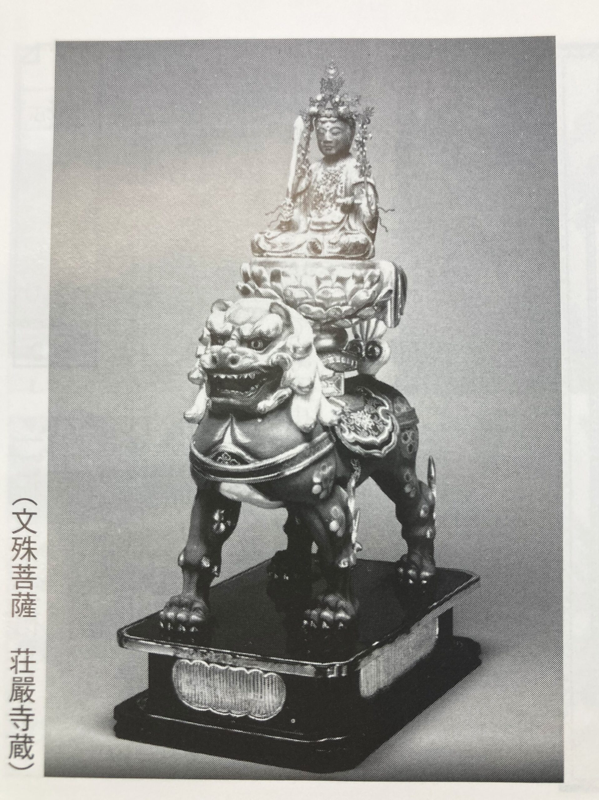 荘嚴寺には、約八百年前。聖一国師が中国の五台山から持ってきたと伝えられる文殊菩薩を安置しています。2005年の震災でお顔が壊れてしまい、修復したときに頭の中から延宝七年(一六七九)に修復したと書かれた古文書が出てきました。古くから、当寺の文殊菩薩はとても大切にされ、一時期、日本三大文殊菩薩として、全国に名をはせていました。「アリの文殊詣で」と言われるくらい参拝者がたくさん、訪れていたそうです。様々な移り行く政変の中をくぐり抜け、文殊菩薩さまは、今もなお、荘嚴寺に鎮座されています。